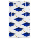 Casquette de graduation bleue avec confettis d'or sur arrière - plan blanc. La couleur Arrière - plan peut être modifiée.