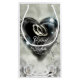 De beaux sacs-cadeaux de mariage élégants que vous pouvez personnaliser. Ce sac-cadeau comporte une image imprimée d'une peinture acrylique de deux alliances en argent à l'intérieur d'un cœur de cristal. Il y a aussi deux belles roses blanches sur le design. Grand sac de mariage pour mettre votre cadeau de mariage à l'intérieur pour les mariés.