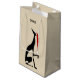 Silhouette de chien gris noir simple et élégant avec casquette du Père Noël. Sac cadeau de Noël moderne et adorable.