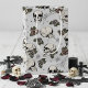 Dessiné à la main dans l'encre noire, ce sac cadeau présente un beau motif de crânes, de roses et de toiles d'araignée dans des tons crème et rougis, le tout contre un élégant arrière - plan gris clair.