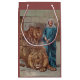Sac cadeau avec un livre vintage pour enfants illustration de Dieu protégeant Daniel du mal dans la tanière du lion.