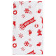 Un sac cadeau avec une répétition transparente et rouge des éléments de Noël - bas, pain d'épice, flocons de neige, rennes, ornements de Noël, bougies, sapin de Noël, et les mots "Joyeux Noël" - en illustration.