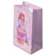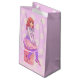 Une mignonne fille portant une robe rose et violette assise sur un tas de macarons !
