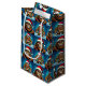 A funny Bigfoot Christmas gift bag with a comic book style pop art sasquatch smiling with a Santa and Christmas lights on.