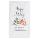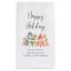 Élégant sac-cadeau de Noël d'entreprise pour vos clients et employés avec une aquarelle moderne de pins de couleur vert sauge, rouge, or et terracotta, "Joyeuses Fêtes" dans un script élégant et le nom de votre entreprise en typographie simple.