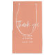 Express votre gratitude en style avec notre grand sac cadeau Merci Mariage Peach. Conçu avec élégance et raffinement, ce sac cadeau est parfait pour présenter des cadeaux réfléchis à votre mariage, à votre famille ou à vos invités comme un gage d'appréciation. Il présente un arrière - plan blanc accentué d'un élégant script de pêche qui dit "Merci", dégageant un charme intemporel. Assez spacieux pour accueillir des cadeaux plus grands comme des robes, des petits cadeaux, des albums photo ou des faveurs de mariage. Une surface lisse et polie renforce son aspect et son atmosphère luxueux.