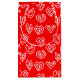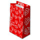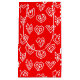 Ce sac cadeau a un design moderne du milieu du siècle Valentin de mazes de coeur blanc éparpillés sur un champ de rouge.