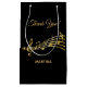 Arrière - plan noir avec des notes de musique faux or. Avec le texte : Merci ! Script de style en lettres d'or. Modèle pour un nom ou des noms. Parfait comme un sac de faveur pour une fête d'anniversaire, mariage, mariage anniversaire, baby shower ou douche nuptiale!