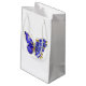 Bijoux, bleu, saphir, papillon aux fleurs pétillantes avec aile décorée de bleu, fleurs précieuses avec feuilles d'or sur arrière - plan blanc.
