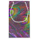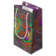 Ce magnifique sac cadeau comporte une photographie festive amusante de plumes de paon prises à l'aide de macro photographie. Des techniques de coloration artificielle ont été utilisées pour mettre l'accent sur les détails. Le résultat est un effet tinsel violet avec les oeillères montrant des nuances de rouge et de vert.