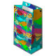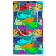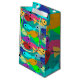 Ce sac cadeau a un design d'école de poissons en vert, bleu, orange, jaune, rouge, rose et bleu-vert nageant dans l'océan.
