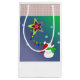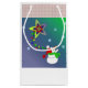 Un design amusant avec un bonhomme de neige fantaisiste accroché à une étoile de vacances, une bordure plate le long du sommet.