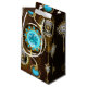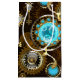 Turquoise lenses with antique watch with brass gears and golden keys on rusty, brown background. Steampunk style.