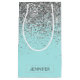 Aqua Blue Turquoise et Silver Parties scintillant Monogramme Nom Sac cadeau. Cela rend le sac cadeau parfait pour 16 ans, mariage, douche nuptiale, anniversaire, baby shower ou bachelorette pour quelqu'un qui aime le luxe glam et les styles chic.