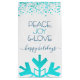 "Paix, joie et amour." Une illustration géante, amusante, ludique, flacon de neige en feuille turquoise et une typographie moderne bleu foncé sur un arrière - plan blanc vous aident à inaugurer la saison des fêtes. Une bordure en confetti turquoise encadre le sommet. Sentez la chaleur et la joie des vacances chaque fois que vous utilisez ce sac cadeau étonnant, graphique, personnalisé petite taille. Des enveloppes assorties, des autocollants, des sacs fourre-tout, du papier d'emballage, des coussins, un décor maison, et plus encore sont également disponibles. Transforme un grand cadeau en quelque chose d'encore mieux ! Il suffit de taper dans la salutation de votre choix et vous pouvez facilement personnaliser ce sac cadeau de vacances. S'il vous plaît, envoyez-moi un message avec toute question ou demande.