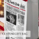 Extra Extra Lisez tout à ce sujet. The North Pole Times vous apporte les derniers et les plus grands articles d'actualité du Pôle Nord, Ce design comprend un design de Noël avec une typographie mignonne, un style de Noël avec rouge et blanc, festif, minimaliste tendance, chic classe, rayures de sucre de canne, et un mignon bulletin de presse, sac cadeau de vacances