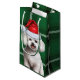 Les Amoureux de les chiens adoreront recevoir ou donner ce sac cadeau de vacances mignon et drôle avec un adorable chien Bichon Frise dans un chapeau de Père Noël sur un arrière - plan vert à motif plaid saisonnier.