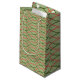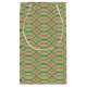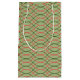 Ce sac cadeau a un design Boho de vagues vertes et orange sur un champ de vert clair.