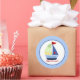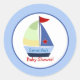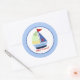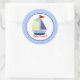 Petit Skipper Design de bateau à voile. Cet autocollant rond mignon est customisé avec vos propres 2 lignes de texte.