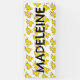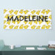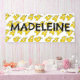 Nom du garçon ou de la fille d'anniversaire sur une bannière remplie de moteurs de train jaunes fumants.