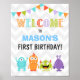 Petite Affiche de bienvenue d'anniversaire Monster