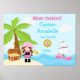 Petite Brunette Pirate Girl en rose Poster d'anniv