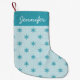 Joli bas de Noël avec votre nom dans une police de caractères blanc avec un arrière - plan bleu turquoise. La réserve est composée d'un motif de flocons de neige bleu turquoise avec de la neige blanche. Le stock de Noël à motifs de flocon de neige est parfait pour les enfants, les animaux de compagnie et les adultes !