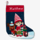 Petite Chaussette De Noël Brunette Elf Boy avec Rudolph