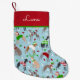 De mignons chiens de Noël dans des tenues de vacances festives. Les Greyhounds italiens avec de nombreuses couleurs de manteau portent chapeaux de Père Noël, bois, chandails avec des ornements éparpillés nom personnalisé Noël Stocking.