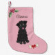 Petite Chaussette De Noël Cute Black Teacup Poodle Monogramme rose