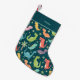 Ajoutez une touche Jurassique personnalisée à votre décor de salon de vacances avec ce stock de Noël en dinosaure monogrammé. Stocking a un motif de dinosaures colorés sur un arrière - plan bleu foncé et le prénom et le monogramme de votre petit. Fait un joli cadeau d'anniversaire, de Noël ou d'autres vacances, surtout pour un jeune garçon!