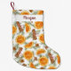 Cette réserve de Noël met en vedette un motif d'agrumes qui rappellera à chacun les odeurs délicieuses des fêtes. Des tranches d'orange, de l'anis, des bâtonnets de cannelle et des sprigs de pin décorent le bas, avec le nom personnalisé en haut.