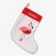 Un bas de Noël animal avec un flamant souriant dans une tenue Père Noël et un nom personnalisable. Ajoutez simplement votre nom spécial, ajoutez ce bas à votre panier et faites un Noël flamand ! Flamant rose Père Noël Fun Animal Petit Noël Stocker Jour férié Design | ©Melissa Patton - Artiste/Illustrateur