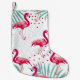 Petite Chaussette De Noël Flamingo tropical et feuille, motif d'été.