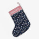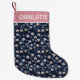Noël Motif floral Faux Broderie Nom personnalisé Christmas Stocking présente un motif imitation brodé de fleurs d'hiver en blanc sur un arrière - plan bleu avec votre nom personnalisé. Créé par Evco Holidays www.zazzle.com/store/evcoholidays