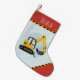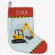 Cette construction pour enfants mignonne et moderne conception de bas de Noël dispose d'une crevette jaune vif (pelle) avec le rouge et un endroit pour vous d'ajouter votre nom de garçon. Parfait pour tous les petits qui rêvent d'être bâtisseurs en cette période de vacances.