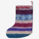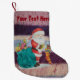 Ce bas traditionnel chic en tricot de style chic shabby de Noël a une photo du Père Noël avec son sac rempli de cadeaux tout emballé et prêt pour la livraison de Noël, vous pouvez voir un peluche jaune avec un arc rouge et un lapin bleu qui sort du haut du sac vert. Le père noël tient un bas coloré rouge et or rayé de noël qui contient un bonbon et des petits cadeaux, il tient aussi un petit cadeau emballé dans sa main La jolie illustration est sur un arrière - plan rayé coloré original pour lui donner une apparence chic et vintage. L'image originale de père Noël est un tableau couleur eau que j'ai créé il y a quelques années. L'image festive colorée et traditionnelle est superbe sur ce joli bas. L'arrière - plan tricoté est une photo de ma propre couverture patchwork qui a été assemblé à l'aide de tissus rétro. Je pense que ce stock original de noël sera parfait pour la cheminée de Noël. Il s'agit d'un stockage personnalisable, vous pouvez le personnaliser avec votre propre texte.