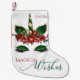Chaussette de Noël | Magical Wives dans la police contemporaine et la calligraphie de script moderne. Joliment décoré Green and Gold Unicorn Face. Elle a de magnifiques yeux de parties scintillant verte avec de longues cils et un or brillant et des cornes et oreilles rayées vertes. - elle porte une tiare florale de poinsettias rouges, saintes et rouges - Customisez le texte et le nom ou vous pouvez le supprimer - C'est un design de vacances non confessionnel adapté à la famille ou bureau à utiliser. Toutes les oeuvres d'art originales © par WhimsicalArtwork™ Cette collection fait partie d'une collection de vacances coordonnée.