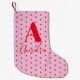 Petite Chaussette De Noël Monogramme moderne Nom Polka Dot Rouge Rose
