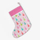 Make Christmas morning extra special with this personalized pastel Christmas stocking, featuring a cheerful pattern of pink, red, aqua, and lime green Christmas trees on a soft blush pink background. The top band can be customized with any name or phrase, making it a thoughtful and festive keepsake for kids or adults alike!