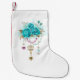 Petite Chaussette De Noël Roses turquoise avec touches