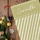Ce design comprend un script de calligraphie or simple joli bas de vacances avec rayures dorées blanches motif, un décor festif de maison de vacances de Noël, un script de calligraphie tendance, un style minimaliste minimaliste simple, une idée de cadeau de vacances fantaisie créative, une décoration de maison de vacances de Noël, un créatif simpliste mignon amusant adorable, un décor de maison de vacances mignonne blanc, un nom personnalisé customisé