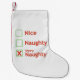Trois cases à cocher vertes avec les mots Nice, vilains et très vilains en texte rouge à côté de eux, la boîte pour très vilain a été vérifiées avec un "X" Père Noël oh là là ! désolé !