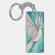 Petite colombe blanche avec ailes éthérées sur une aquarelle arrière - plan bleue, ce design présente une belle petite colombe blanche avec ailes éthérées sur une aquarelle arrière - plan bleue.