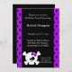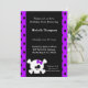 Invitations d'anniversaire de crâne blanc avec un crâne et un graphique croisé.arrière - plan pourpre et noir pointillé qui correspond à l'arc pourpre du crâne. Personnaliser avec les détails de votre fête.délicieux doodles