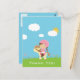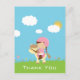 Cette fille merci carte postale a une jolie fille brune sur un cheval de caricature dans un champ de fleurs. Il y a des nuages bouffants blancs dans le ciel avec le soleil qui regarde derrière un seul nuage. Cela peut être facilement customisé avec votre message de remerciement à l'envers. Ceci fait partie d'un ensemble d'invitation d'anniversaire correspondant. Graphiques de Zenware Designs chez Mygrafico