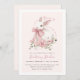 Bienvenue à une petite fille lapin avec cette invitation charmant et élégante au baby shower. Doté d'un lapin d'aquarelle douce à l'arc rose et de fines fleurs roses, ce design est parfait pour une fête de printemps ou de Pâques. Avec une coquette et une touche moderne, cette invitation donne le ton d'un baby shower charmant et élégant.