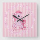 Personnalisez cette horloge murale imprimée avec un mignon poney rose sur un arrière - plan rayé pour un enfant avec son nom. Disponible en style carré ou rond. Créé avec l'oeuvre d'Angela Wenke sur www.resaleclipart.com.