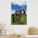 Un mignon petit robot rouge marchant sur une colline herbeuse