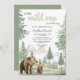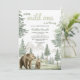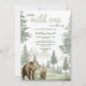 Invitation vos proches à un baby shower avec cette invitation à l'aquarelle sur le thème de la forêt et de la montagne. Le charme de la palette verte sauge et le design adorable de la mère et de l'ours bébé évoquent un sentiment de paix et de beauté naturelle. Cette carte personnalisable est parfaite pour des fêtes de baby shower rustique, en plein air ou en bois.
